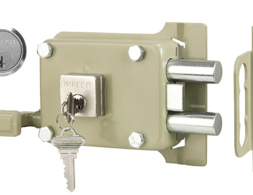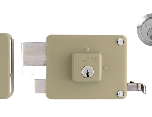Ideal para puertas de madera o para soldar. Caja embutida en una sola pieza, en lámina de acero. Pasador rectangular inyectado, accionado en tres vueltas para MÁXIMA SEGURIDAD. Pintura electrostática. Contraguardas en forma de hongo. Primera contraguarda antitaladro. Porta cilindro niquelado. Cantonera embutida en lámina de acero. Pestillo automático retraíble en la parte interior con la llave o la manija. Para puertas de 30 a 60 mm de espesor, aplicación izquierda o derecha. Tornillería para puertas metálicas o de madera.