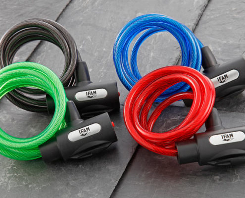 Los Cables Street de IFAM estén pensados para proteger bicicletas de pequeño tamaño. Disponibles en longitudes de cable de 65 y 90 milímetros, los Street se presentan en tres colores diferentes (negro, verde y violeta) lo que los convierte en ideales para jóvenes ciclistas que los empleen como su primer antirrobo de bicicleta.| CABLE: | – Fabricado en acero con cobertura plástica. – Longitudes: 65 mm. (Street65) y 90 mm. (Street90). – Diámetro: 10 mm. |