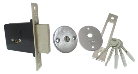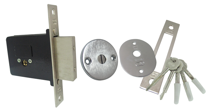 Cerradura de incrustar auxiliar de alta seguridad para puertas de madera o lámina. Escudo protector Anti-ganzua. Distancia al centro del cilindro 45 mm. Cerradura con sistema de seguridad tetra. Cinco llaves tetra. Pasador rectangular acerado.