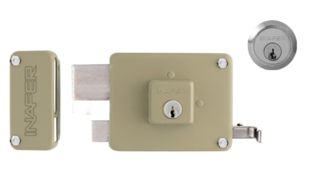 Ideal para puertas de madera o para soldar. Caja embutida en una sola pieza, en lámina de acero. Pasador rectangular inyectado, accionado en tres vueltas para MÁXIMA SEGURIDAD. Pintura electrostática. Contraguardas en forma de hongo. Primera contraguarda antitaladro. Porta cilindro niquelado. Cantonera embutida en lámina de acero. Pestillo automático retraíble en la parte interior con la llave o la manija. Para puertas de 30 a 60 mm de espesor, aplicación izquierda o derecha. Tornillería para puertas metálicas o de madera.